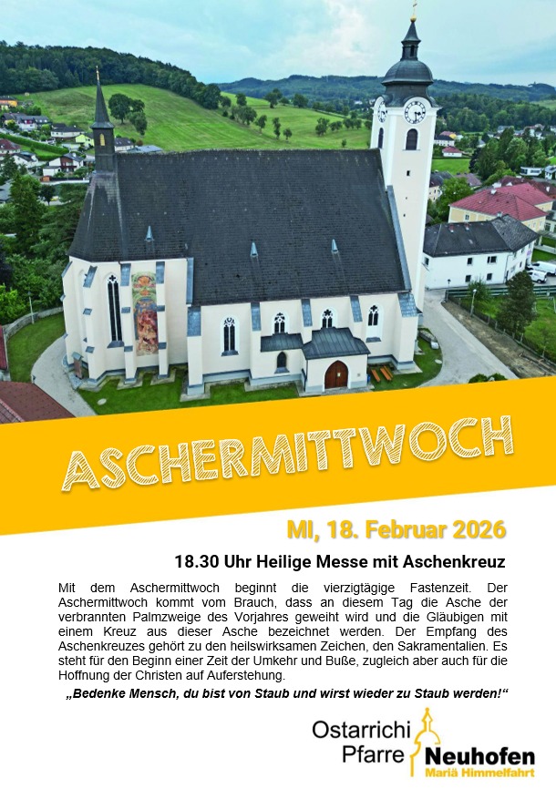 18:30 h Hl. Messe in der Pfarrkirche mit Spendung des Aschenkreuzes