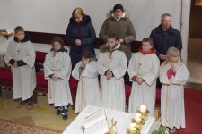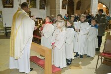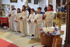 beim Vorabendgottesdienst 10 Ministranten im Dienst und Pfarrer Christoph