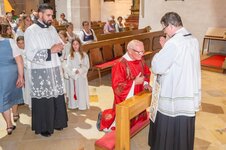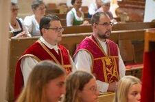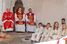 Neupriester Lukas Albert in Konzelebration mit Pfarrer Christoph abgehalten. Sorgfältig