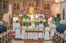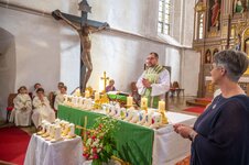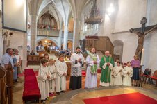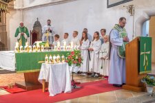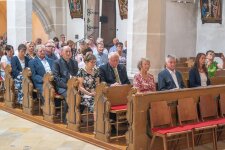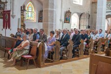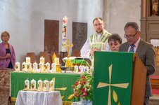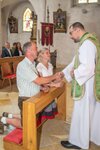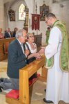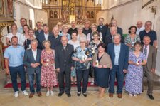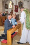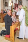 Insgesamt 14 Paare, die im letzten Jahr ihre Hochzeitsjubiläen feierten, haben am Sonntag, 22. Juni ihre Treueschwüre erneuert und von Pfarrer Christoph den Segen empfangen. Unser Moderator konnte gemeinsam mit Diakon Hans und Seminaristen Simon für 6 silberne Hochzeitspaare, 5 goldene, 2 diamantene und ein eisernes eine Festmesse zelebrieren, die vom Chor Zeitlos eindrucksvoll gestaltet wurde. Pfarrer Christoph Hofstätter bedankte sich zudem bei Maria Gerstner für die, von ihr gestalteten schönen Einladungen und Feierhefte sowie für ihre Beiträge zum Messablauf.