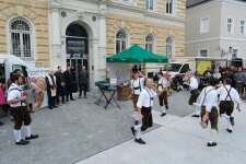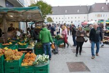 Bürgermeister und Dompfarrer von St. Pölten waren bereits zur Stelle, als die Neuhofner Pfarrgruppe den Wochenmarkt am Dom- und Herrenplatz der Landeshauptstadt besuchten. Hier gab es neben den Einkaufsmöglichkeiten am Markt auch ein Unterhaltungsprogramm im Rahmen einer lokalen Erntedankfeier.