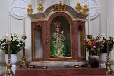 Der Besuch des Dommuseums, einer der beiden Höhepunkte des Pfarrausflugs, ermöglichte einen erstaunlichen Überblick über 2.000 Jahre christlicher Kunst und Kultur. Ein besonderer Messkelch aus massivem „Donaugold“ und die berühmte „Messerer Monstranz“ aus Waidhofen/Ybbs gehörten zu den bemerkenswerten Exponaten, auf die Museumsleiterin Barbara Taubinger und die gebürtige Neuhofnerin Manuela Rechberger besonders aufmerksam machten. Mit beiden Führerinnen konnte auch der prachtvolle Dom Mariä Himmelfahrt bei Festbeleuchtung bestaunt werden. Jakob Prandtauer und Daniel Gran konnten sich hier - wie bei der Sonntagberg-Basilika – außerordentlich verwirklichen. Während der nachmittäglichen „Freizeit“ ließen sich nach Belieben weitere Besichtigungen in der Barockstadt anschließen: In der Prandtauer Kirche konnte man beispielsweise eine Replik des „Prager Jesuleins“ am seitlichen Devotionsaltar bewundern oder auch in der Fußgängerzone flanieren.