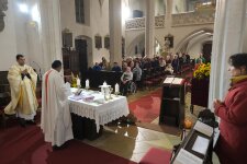 Der nachmittägige Besuch des Wallfahrtsortes Maria Laach am Jauerling brachte ein Wiedersehen mit dem aus der indischen Diözese Guntur stammenden Peter Yeddanapalli, der im Sommer die Urlaubsvertretung unseres Pfarrers übernommen hatte. Am 1. September wurde der aus Indien „Eingebürgerte“ zum Provisor von Maria Laach bestellt. Der Wallfahrtsort Maria Laach hat durch den kunstvollen Schnitzaltar aus dem 15. Jahrhundert große Berühmtheit über den lokalen Raum hinaus erlangt. Im zentralen Motiv des geöffneten Flügelaltars stellt er Maria als Himmelskönigin dar. Der neue Maria Laacher Pfarrer feierte schließlich für die Neuhofner Ausflügler- und Wallfahrergruppe mit Pfarrer Christoph und dem ebenfalls aus Indien stammenden Kaplan Philipp unter Assistenz von Diakon Johann die Vorabendmesse zum 28. Sonntag im Jahreskreis.