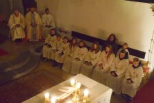 Den gut besuchten Adventgottesdienst am 3. Dezember um 6 Uhr früh feierte unser Pfarrer in Konzelebration mit Kaplan Philipp unter Assistenz von Diakon Johann. Und eine Schar von 7 Ministranten scheute nicht die frühe Tagwache um ihren Dienst am Altar wahrzunehmen. So beeilte sich Pfarrer Christoph die jungen Messdiener nach dem Schlusssegen mit einem Frühstücks-Snack beim benachbarten Bäcker zu belohnen.