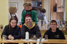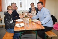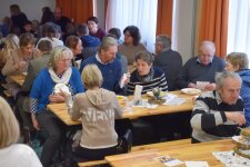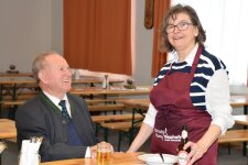 hungrige Gäste in einem vollen Pfarrsaal samt Foyer. Das Gasthaus Bauer-Resch