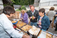 Der diesjährige Zwetschkenkirtag ging mit einer nicht besonders großen, aber doch bunt gemischten Besuchergruppe über die Bühne. So hat sich unter das lokale Stammpublikum auch eine kleine Gruppe aus dem östlichsten Bundesland gemischt. Die Burgenländer besuchten unsere Filialkirche aus eigenem Interesse, bewunderten die barocke Kircheneinrichtung und besichtigten auch den originellen Hühnerstall hinter dem Hochaltar. Nach dem Gottesdienst haben sie sich zu den „Einheimischen“ gesellt und mit den angebotenen Köstlichkeiten gestärkt. Wie auch sonst immer, zog die lokale Veranstaltung auch frühere Neuhofner an, die ihre alten Kontakte zum verlassenen Heimatort auffrischen wollten.