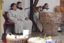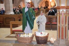 Noch ist der Hochaltar festlich geschmückt und auch die