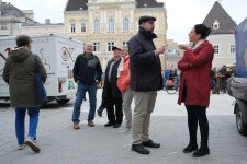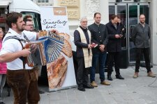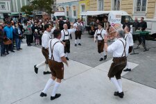 Bürgermeister und Dompfarrer von St. Pölten waren bereits zur Stelle, als die Neuhofner Pfarrgruppe den Wochenmarkt am Dom- und Herrenplatz der Landeshauptstadt besuchten. Hier gab es neben den Einkaufsmöglichkeiten am Markt auch ein Unterhaltungsprogramm im Rahmen einer lokalen Erntedankfeier.