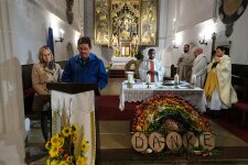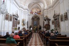Der nachmittägige Besuch des Wallfahrtsortes Maria Laach am Jauerling brachte ein Wiedersehen mit dem aus der indischen Diözese Guntur stammenden Peter Yeddanapalli, der im Sommer die Urlaubsvertretung unseres Pfarrers übernommen hatte. Am 1. September wurde der aus Indien „Eingebürgerte“ zum Provisor von Maria Laach bestellt. Der Wallfahrtsort Maria Laach hat durch den kunstvollen Schnitzaltar aus dem 15. Jahrhundert große Berühmtheit über den lokalen Raum hinaus erlangt. Im zentralen Motiv des geöffneten Flügelaltars stellt er Maria als Himmelskönigin dar. Der neue Maria Laacher Pfarrer feierte schließlich für die Neuhofner Ausflügler- und Wallfahrergruppe mit Pfarrer Christoph und dem ebenfalls aus Indien stammenden Kaplan Philipp unter Assistenz von Diakon Johann die Vorabendmesse zum 28. Sonntag im Jahreskreis.