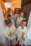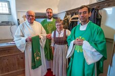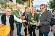 Der diesjährige Zwetschkenkirtag ging mit einer nicht besonders großen, aber doch bunt gemischten Besuchergruppe über die Bühne. So hat sich unter das lokale Stammpublikum auch eine kleine Gruppe aus dem östlichsten Bundesland gemischt. Die Burgenländer besuchten unsere Filialkirche aus eigenem Interesse, bewunderten die barocke Kircheneinrichtung und besichtigten auch den originellen Hühnerstall hinter dem Hochaltar. Nach dem Gottesdienst haben sie sich zu den „Einheimischen“ gesellt und mit den angebotenen Köstlichkeiten gestärkt. Wie auch sonst immer, zog die lokale Veranstaltung auch frühere Neuhofner an, die ihre alten Kontakte zum verlassenen Heimatort auffrischen wollten.